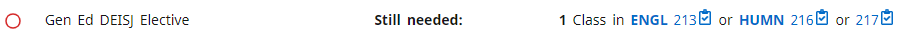 Somewhere near the top of the page, you will see the DEISJ requirement, with the available classes listed to the right: